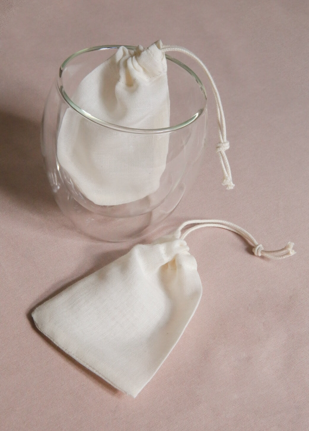 My set of two handmade, reusable cotton tea bags are ideal for making your favorite tea. Fill the tea bag, brew, drink, empty the bag, wash, dry and simply reuse again.